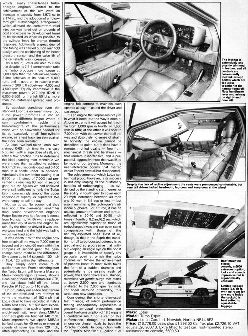 home email news esprit models road tests buying an esprit running an esprit esprit owners maintenance pictures for sale history Lotus models links