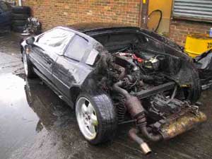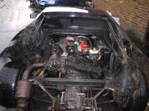 First problem was that their jack would fit under the jacking point, the 350 doesn't come with a Jack or Spare Wheel (option). My SE Jack was of no use, so a block of wood was used with success. The whole process only took around 45 minutes and was done with extra care and attention which made Phil feel a little happier (might have something to do with us both on his shoulder and me taking photos all the time). Two 295x35x18" Pirelli P-Zero's fitted for just under £500 wasn't a bad price. A huge saving on dealer prices and a good job done. I wouldn't advise taking your Esprit to a non-specialist for anything other that consumables, but if its MOT's, wheel alignment, tyres, brakes, oil changes, air-con then a back street garage can save you £££. Just make sure you keep an eye on them and get them to use the product you want. If you've got the cash then go to a Lotus Specialist, but I'm not convinced you get better care. Valentine One has arrived and has been installed (see Radar Detector Install). Works great on GATSO's but came across a pressure camera, which has pressure pads in the road and works out your speed and then SNAPs you if your going to fast, No Radar used, so the detector wasn't much help, doing 40ish in a 30. Just passed the Date for my Xmas Day picture, now I've got to wait another 14 days. Not having much luck at the moment. Replaced my cracked rear light (due to parking my motorbike too close). Les Twigg sourced a replacement rear light cluster for me and I took on the work myself (see Rear Light Cluster). A very eary job, now only a few bit left to do. My friend Phil C has just upgraded his S4S to a Sport 350, so I'll be driving that soon, will be my first go in a V8 and I'm looking forward to it. Hope everybody had a merry Xmas and a happy new year, I for one had an interesting Xmas day. In the Esprit on the way to Norfolk, I was approaching a roundabout on an A road. A quick look at the directions and 'FLASH' 'FLASH'. You guessed it, a camera 50 meters away from the roundabout got me, midday, Christmas Day. Looked immediately down at the speedo (ducking to see, as you have to) and saw 70mph, so I guess around 80ish as I had my Xmas photo taken. Luckily (and I mean lucky) I have a clean license, so 3 points shouldn't cause too much pain. Have now ordered a Valentine One Radar Detector which should be with me by the end of the month. I have seen these working in an Esprit and from reports are very good. Due to an excellent Xmas present of a digital camera, the installation will be well documented. So keep watching for updates. Rumors are that the Esprit production line will soon cease due not to engines, or meeting regulations, but because of Renaults decision to stop producing the gearbox. As I hear it, the reason for the poor gearbox in such a great car, is that the only unit that would fit was the Renault unit. Nobody else make anything that would fit in the Esprit dimension, so Lotus have had no choice but to stick with the 25's gearbox over the last 15-odd years. Having a fresh one designed was and will never be in the financial reach of Lotus, so we're suck for now. This story of Renault production isn't official, just the usual Lotus hearsay. New Rear for U.S. V8 It appear the U.S. spec for the New 2002 V8 is a little different from the European spec. As you can see, the exhausts now exit centrally, with what looks like an Aluminum rear plate. Nothing confirm officially, but if doesn't look like this will be available from Lotus in the UK. Click here to see more pictures December 2001 My SE how has a new manifold, B-service and New timing belts. Also needed a new header tank which was rusted badly, not to worry though, only £240 each. Saying that, it feels like a new car now, it had been really stuggling, taking big gulps of air in through the manifold. Now everythings better, I keep spinning the tyres, guess they will be next on the shopping list. Should have some pictures soon of my engine on the floor next to my car, a rusty header tank and lots inbetween. My thanks goes out to Neil Turner, who's boys done good and are now fully recommended by Lotus Esprit World. Visited