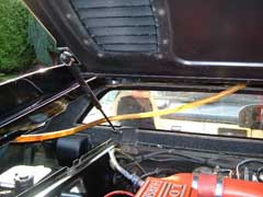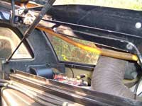 (6) I found the best way of getting the fuel hose out was to follow the path of the hose to the rear window and then gently pull down from one side. This detaches just enough carpet to pull the hose free. It seems that the hose along the top of the window is often in better condition, but mine had been glued in place.