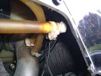 (10) You can see the plastic 90 degree elbow with a short piece of hose which connects to the fuel filler pipe. I was going to replace this like-for-like, but the fuel hose is much stiffer that the original material and I decided that the elbows need not be refitted, but they do have a use...