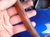 (8) Once the clips have been removed on both ends you can pull the hose away. The shorter pieces of hose looked in OK condition and I was tempted to leave them. I’m glad I didn’t though as they were worse than they looked. My breather hose had two gashes each a couple of inches.