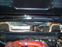 4. Remove the quarter trim from the other side. The offending hose has discoloured and is brittle.(5) If your model is one of those fitted with PAS, you may need to unbolt the power steering reservoir before removing the passenger side quarter trim.