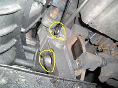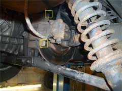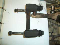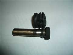 Now go back to your caliper mounting brackets while the discs are soaking. You will see two pins. 1 has a normal bolt head, the other 2 straight edges. These are very important and must be free to move in and out easily. One set of mine was seized so that caliper was useless as far as stopping was concerned.