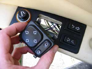 To get at the mirror control panel, you'll need to remove the door panel (see guide). Once this is off, you'll be able to remove the old panel. To do this simply pull out the connectors and push the panel out from behind. As you can see from the pictures above and below the old panel doesn't look like it's worn out from the top. But it's underneath that's the problems. The circuit board has parted company with the switch. This is a very common problem with this part.