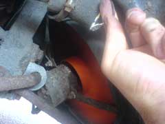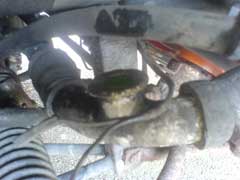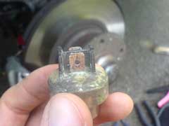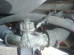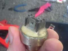 Place the switch back into the grommet, which you should replace, but can get away with re-using short-term. The switch should easily push back into the pipe. You may want to secure it further by using some wire around the pipe. Remember the pipe gets very hot, so no plastic cable ties!. Reconnect the wires and you're good to go. We grease up our connections, as we now had no plastic covers. This is worth doing anyway, as it will help protect the switch from all the dirt and debis from the road. To test, take the car on a run to warm the system up. Then leave running to make sure the fan cut in.