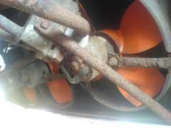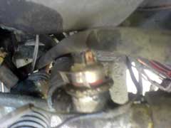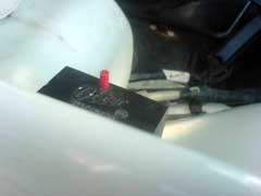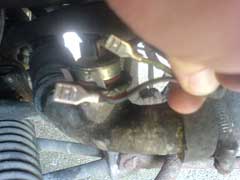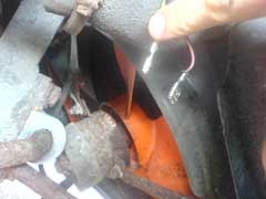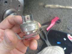 These pictures were sent in by Darrin Alker who has also done this work. He's switch is inverted as shown in the illustration above. His pictures show how wire can be used to support the switch to make sure it stays where it should. The middle picture shows it wrapped up in tape to protect the connections from the elements. Lastly the piece that make up this piece of the car.