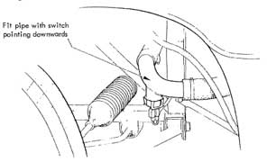 On DOM/ROW Turbo models the switch is fitted in the radiator inlet elbow pipe. Until Dec. '84, the pipe was fitted with the switch pointing upwards but the possibility of an air pocket being trapped around the switch and the consequent erroneus temperature sensing, led to the pipe and switch being inverted .
