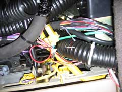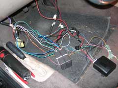 Assume the Lotus position in the passenger footwell and notice the well wrapped bundle of wires near the center console under the dash. Unwrap a couple of inches so you have easy access to the wires and locate the Slate-White and Blue-White wires. These are the negative trigger wires for the window up and down respectively.