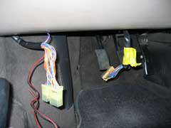 Reconnect both harness connectors. At this point you should be able to reconnect the battery and test everything. If it all works then take zip ties and tidy up the wiring. If you look under the dash close to the door you will see a lot of space available for you to tuck the units and wiring up in there. Use zip ties to hold the units up there, but be careful not to impede the movement of the front bonnet release lever.