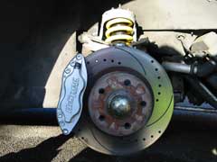 After testing the Sport 350 suspension on LEW's SE it was found to be too hard for the lighter 4-cylinder Esprit. LEW purchased some second-hand GT3 suspension from a LEW user. This suspension was in poor condition due to corrosion of the surface. The finish on the original Lotus suspension isn't particaluarly long lasting. There was no damage to the suspension, just to the finish.