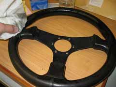 The wheel of my SE was worn and faded to a brown hue. I looked at getting a new one (£150) but fellow LEW member Alan Croft showed me his re-finished one,and i thought i'd have a go.