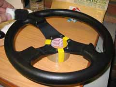 Removing the wheel is easy. Carefully pull off the center pad,and then undo the six allen head screws,done. (i think once you have experienced the ease of doing this,you will take it off a lot more for easy access on interior jobs, binnacle removal, pedal access etc).