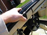 Do this to all four clips (two either side). This will allow you to remove the sunroof. Now from outside the Esprit, lift the roof upwards and backwards. You need to release the tongues from their slits. This may take a little effort, so be careful as the roof weighs quite a bit and you don't want to be dropping it on your paintwork.