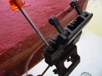 Once the tongue is removed, you'll see another set of rubber washers between the tongue and support. You can now remove the screw holding the support to the glass. Once this is out you can remove the two pieces of the support from either side of the glass.