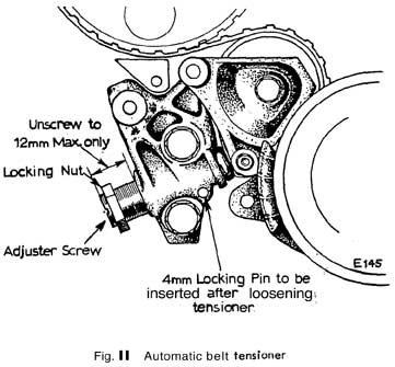The camshaft driving belt i s fitted with an automatic belt terlsioner assembly (early