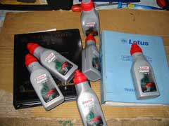 PUK Esprit Racing supplied 6 x 0.5 litre bottles of Castrol TAF-X 75W/90 which is the only oil that should be used in the Esprit transmission. This information comes from Lotus' own testing and shouldn't be ignored.