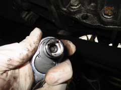 You can see from the picture the socket is like any other, but it's square. Use this to remove the drain plug. Make sure you have something at hand to collect the transmission oil once the plug is removed.