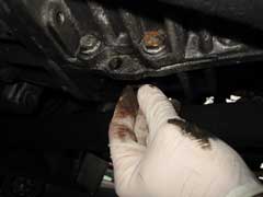 As you can see, the oil comes out pretty fast and we left a nice patch of transmission oil behind once we'd finished!