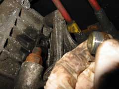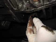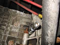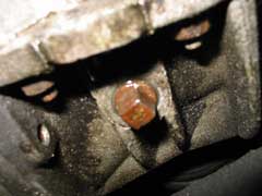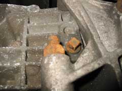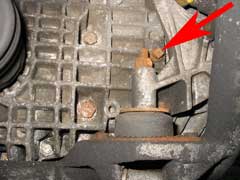 The gearbox and final drive share a common oil supply in the Renault sourced boxes fitted to Esprits from 1987-2004, for which square headed drain and filler/level plugs are provided. The drain plug is located in the forward underside of the unit, and the filler/level plug in the left hand side, just forward of the gearbox mounting bracket (see pic at top of page).