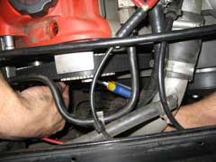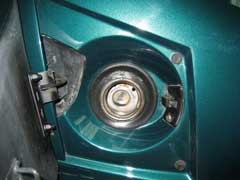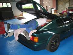 The first job was to remove the rear deck, having first marked to bracket for alignment. It is possible with the deck in place, but a hell of a lot easier with it off. Stick the car on axle stands and let it cool down. While the car was cooling down we had a look around for things to do and found that the body-filler neck grommet was in very bad shape - we replaced it.