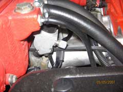 3. If you have a fuel pressure tester, hook it up to the Schrader valve on the fuel rail and release the fuel pressure into a suitable container, or you can run a small hose back to the fuel fill. If you don't you can crack the fuel line going to the filter, but you'll get fuel all over so have some rags to clean up the mess. Here's the valve