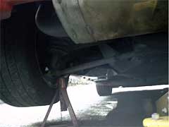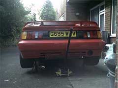 Next chock the front wheels and jack up the rear of the car, then support the car with axle stands. PLEASE do NOT just rely on a jack. You really do not want an esprit landing on you! Even with axle stands, it is always a good Idea to keep the jack in place.