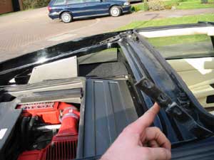 Once the hatch is removed, place it somewhere safe that won't scratch the paintwork. Refitting the hatch is of course the same as removing it, only in reverse. Support the hatch in place over the Esprit while the bolts are refitted both sides. Now the trick to realign the hatch is not to attach the struts. These will push the bolts out of alignment if they're not fully tighten.
