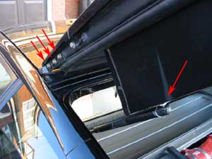 Tighten the bolts, but not fully. You should be able to get an ideal of where they were before by the marks on the plates. Then you can test the alignment. Make sure the gap around the hatch is even, both sides and the bottom. Check that the hatch clips will not fowl. Once you are happy with the alignment. You can tighten the bolts fully and reattach the struts.