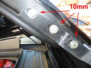 Now to test the alignment by trying to close the hatch and reopening it again. Mine closed OK three times, but wouldn't open. The clips, although aligned, were fowling slightly on the clips, stopping the hatch from reopening. To release the hatch again, I simple held on to the sides and pulled to move the hatch slightly left to right. This released the hatch. I could be realign slightly and try again. If you do need to realign the hatch, you'll need to take the struts off again. If you loosen the bolts with the strut in place, they will push the hatch out to its furthest alignment.