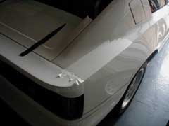 This is Alan Crofts attempt at fitting the above spoiler (soured from S J Sportscars Ltd) to his Esprit, which is a 1989 Turbo. This should work on any of the Stevens cars not fitted with a spoiler. If you already have a spoiler and wish to change it, then you'll need to have the old holes plugged and resprayed. Which you could get done at the same time as you have the new Spoiler body coloured.