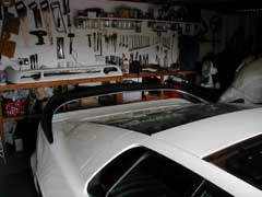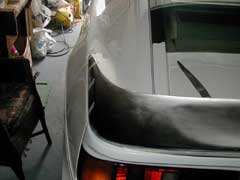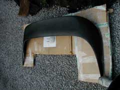 Here are some pictures of the car before I started. This is the spoiler as it comes from SJ. It will a require bit of preparation before final spraying and my local body shop did this. The first job was to put masking tape all over the area where the wing is to be fitted. This protected the paintwork while offering the spoiler for fitting and also made marking out an easier process.