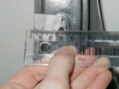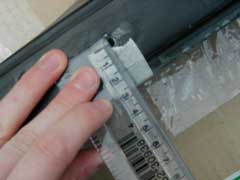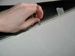 This picture also shows in greater details the tape for the captive nuts. As the centre line was previously marked on the tape this could then be copied and marked onto the rear of the car. This will allow you to see the area for the holes to be drilled in the body once the spoiler is removed. At this point I also drew around the base of the spoiler to help in both repositioning of the spoiler and to give a guide as to the edge of the spoiler for measuring the drilling area. Once this is done the spoiler can be removed.
