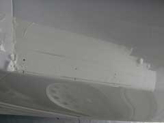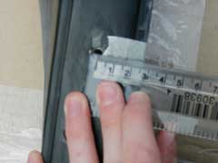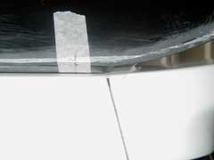 The spoiler comes fitted with captive nuts embedded in the fibreglass. As can be seen from these pictures I also ran a piece of masking tape on the outside edge of the spoiler top to bottom. I then carefully marked the centre line of the hole on this piece of tape.