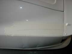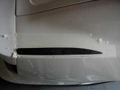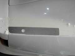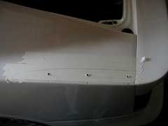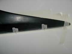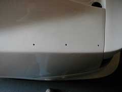 I then carefully measured the distance from the outer edge of the spoiler to the centre of the holes of the captive nuts. This measurement was then marked onto the car to show the position for the holes to be drilled. From this picture you can see the outline of the spoiler and the mark made from the tape showing the centreline of the captive nuts. Once this is done you should now have the six holes marked on the body.