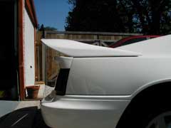 Here are the pictures of the final position. The spoiler was then taken off and taken to the body shop for prepping and painting. Here are the pictures of the finished article. In my opinion this is the best spoiler that was fitted to the Esprit and the only downside to fitting it is the virtual removal of any rear vision you might have had!!