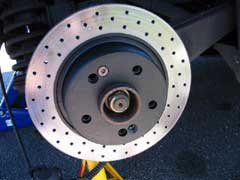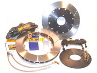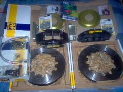 There are 3 kits available for the Toyota equipped Esprits for both 4-pot and 6-pot Calipers. You'll have to ask for more info on the 6-pots. All kits are the same, except the Discs. You can choose between Plain discs, Slotted discs (which have grooves in them) or Drilled and Slotted (which have grooves and holes), which is the discs shown and tested by Lotus Esprit World.