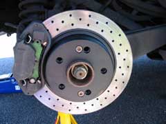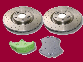 Firstly you can change the standard pads to a higher quality pad. This is the first and cheapest upgrade. Secondly you can change the discs to something either larger or of better quality. You can also get drilled and/or grooved discs, which will help improve performance.