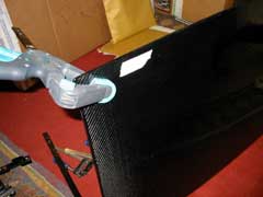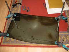 Once you have removed all the fixings (remember to see other guide for removing the front fixings). We clamped the two roofs together to mark up the holes for drilling. I would recommend using some masking tape over where you're about to drill to stop any splitting that could damae the roof. We found the carbon fibre roof to be very slightly smaller in width than the glass one. This shouldn't be a problem.