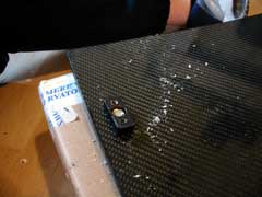 Once you're happy with the position, you can drill the pilot holes into the carbon fibre roof. We used a 4mm bit to drill the first holes. After drilling the pilot. We would then advise removing the glass roof before drilling the larger holes. We didn't and you can see what happened to LEW's glass roof. Whoops!