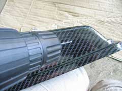 It's obviously been molded from a genuine Lotus Airbox as it's exactly the same as LEW's SE Airbox. They have deleted the crankcase vent intake, which takes a ventilation pipe from the crankcase back into the Airbox. This pipe vents air back into the system that can contain oil mist. By law manufacturers have to vent this back into the car as they can't have oil coming out onto the road. For the private owner, this is ok as the mist isn't going to cause problems (as long as everyone doesn't do it!). We'll deal with the pipe later in this guide. We at LEW ran a Catch Tank to collect this oil and had to seal off the vent intake (see above right). But for this install we are going to run without the catch tank, as you would. Plus we don't want to drill into our new carbon Airbox just yet!