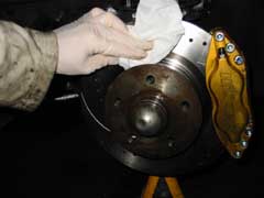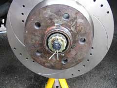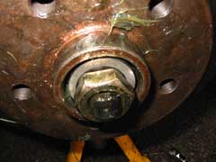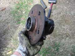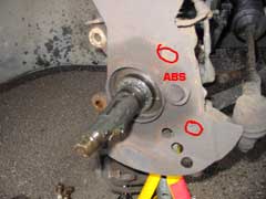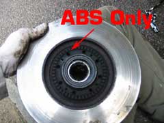 You now have your hub ready to attach the new disc to. Meanwhile, if you don't have ABS, remove the heatshield, which is held on by two bolts. If you have ABS you'll see the sensor plugged into the rear of the shield.