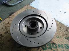 There are 3 kits available for the Toyota equipped Esprits. All kits are the same, except the Disc. You can choose between Plain discs, Slotted discs (which have grooves in them) or Drilled and Slotted (which have grooves and holes), which is the discs shown and tested by Lotus Esprit World.
