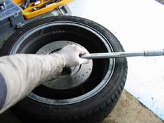 Replace the heatshield afterwards (those without ABS can leave it off, this will aid cooling). You may wish to mount the new disc first to see how much movement you'll need on the shield.