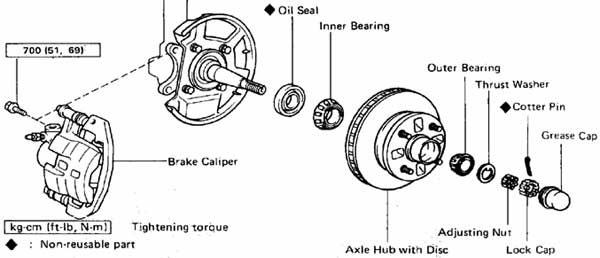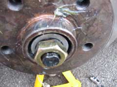 Slide the hub back on, making sure the disc rotates freely. Clean (wipe over) and re-grease the bearing and replace. Followed by the thrust waster and finally the nut.
