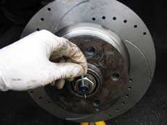 Torque the 30mm nut upto 26lb ft to seat it in the hub, then back off & adjust up until bearing play has just gone. Fit locking collar & new split pin provided. Check that the disc is central and disc run out is not more than .003". Do not tighten the nut fully as this will put too much pressure on it and it will fail.