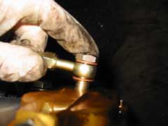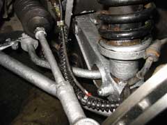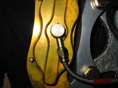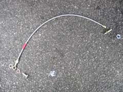 I used the old covering from the plastic hoses for extra protection and to hold the ABS wires to it. Fix the hose to the brake pipes and then to the rear of the caliper. Use the copper washers supplied as shown. Tighten to 15lb ft.