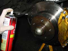 If your Esprit has ABS you will need to bend the edges of the shield inwards to stop it touching the new larger disc. I did this by removing the shield and bending it on a bench. I took advantage of the brakes being off to paint my mounting and suspension with a rust proof paints.