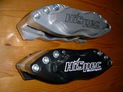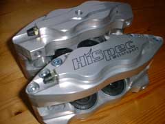 The Esprit brake upgrade shown here uses a kit supplied by PNM Engineering. The kit contains 2x Ventilated Brake Discs (plain/grooved/drilled&grooved), 2x HiSpec 4 pot Calipers, 2 x braided brake hoses, 2x alloy caliper mounting brackets, assorted nuts, washers & bolts and one small knife. Brake pads aren't part of the kit, as you can choose which type you want. We've gone for the Hawk pads which should perform well with the grooved & drilled discs.