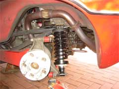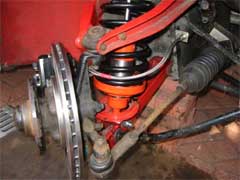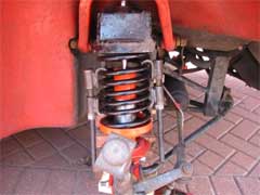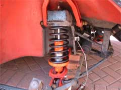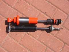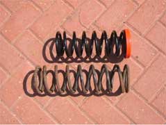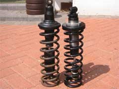 The dampers used in the conversion are from the 1985-1987 model fitted with the ventilated brake discs and are available with adjustable spring seats. The springs were custom made for this application. The photos show the old and new components side by side.