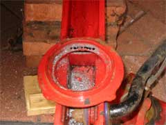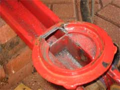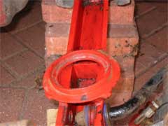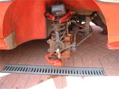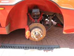 The modification involves cutting out a slot at the rear of the spring set using a drill and a grinder. The size of the slot will depend on the type of damper fitted. As the photo shows, the outer edge of the spring set remains allowing the old spring to be refitted if required. Once the slot has been made and all of the burrs have been removed the lower arm requires painting to prevent corrosion.